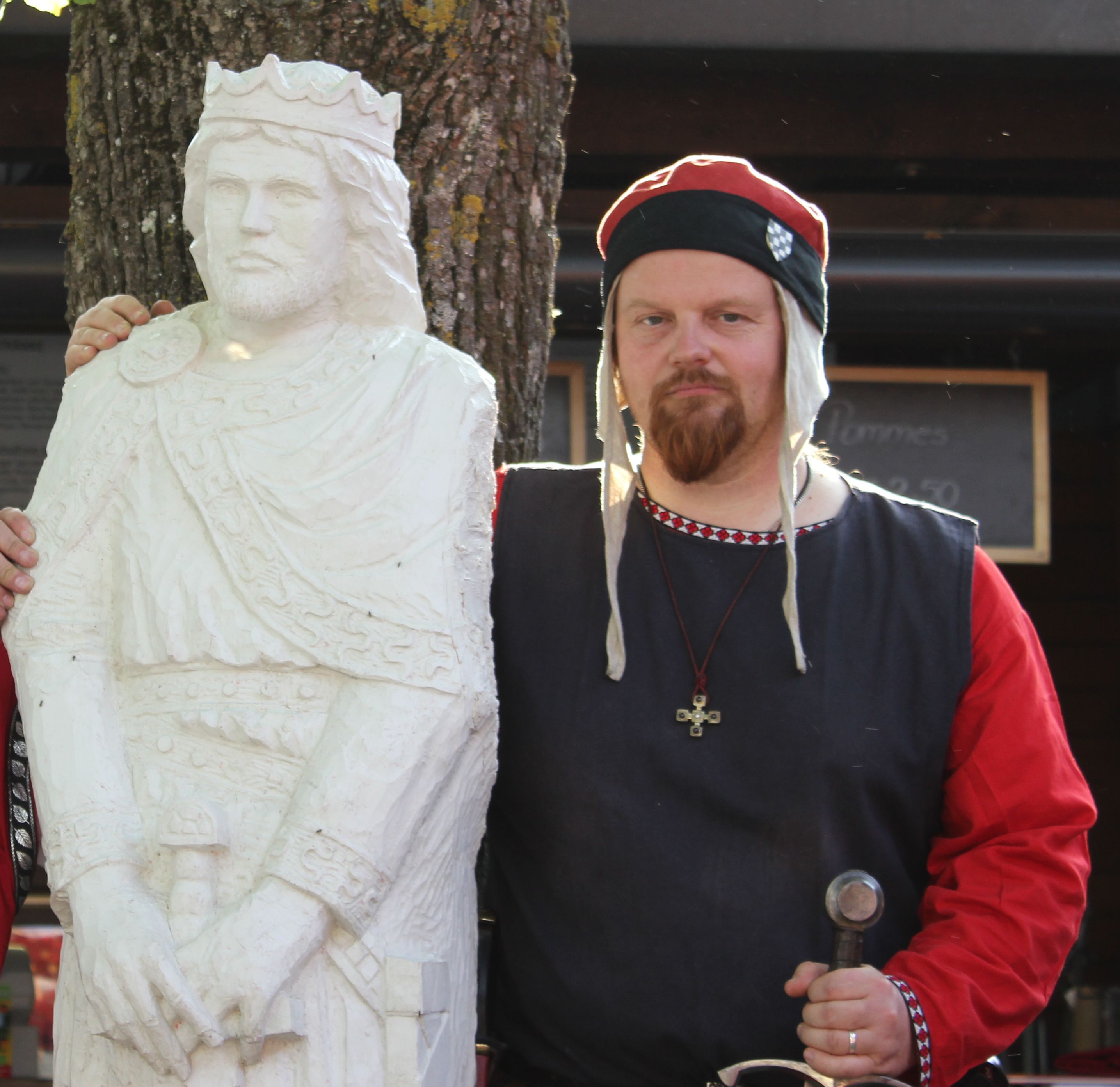 Nun da wir also mit unserem Zelt von Mittelaltermarkt zu Mittelaltermarkt wanderten ergaben sich natürlich ganz andere Möglichkeiten. Zum einen konnte Mann sich jetzt eine Rüstung und Waffen etc. zulegen und zum anderen brauchte man auch noch mindestens eine Ersatzgewandung. Die Zeit war also gekommen sich auf eine Epoche/Darstellung festzulegen. Also begann ich mich zunächst mit der Geschichte des Neuffen und danach mit der Geschichte der Teck und anderer Burgen zu befassen. Schnell war dann klar es soll die Stauferzeit sein, haben doch die meisten Burgen der Schwäbischen Alb in dieser Zeit ihren Ursprung oder ihre Hochzeiten. Nun wäre es fast Logisch gewesen sich nach einem der Neuffener Herren zu benennen, wäre da nicht ein gewisser Berthold von Neuffen gewesen, der damals auf den Mittelalter märkten mit seinem Gefolge unterwegs war. Nun dieser Berthold hatte zum einen offensichtlich keine Ahnung von seinem Ritter den er darstellte und zum anderen Benahm er sich Abends wenn das Publikum die Märkte verlassen hatte nicht gerade ritterlich (Gettoblaster mit Heavymusik ist nicht unsere Vorstellung vom Mittelalter). Also war für uns klar wir wollen eine Darstellung von der das Volk vielleicht nicht so viel Weiß aber die dennoch existiert hat und die wir wieder in Erinnerung bringen können. Also ging die Suche los, zunächst fanden wir im Internet eine Burg Hirschbühl mit dem zugehörigen Geschlecht der Edelfreien von Hirschbühl, laut Aussage der Website befand sich diese Burg einst in unserem Heimatort 72660 Beuren. Nach wochenlanger Befragung alter Beurener und Recherchen im Net und in der Stadtbücherei von Nürtingen war dann klar das diese Burg nicht in unserem Beuren stand sondern in Beuren bei Singen. Bei den Recherchen in der Stadtbücherei stieß ich aber auf die Burgstellen Tiefenbach, Mansberg und Bohl , diese befinden sich zwar heute alle auf der Gemarkung von Dettingen/Teck aber bei Tiefenbach sind es nur wenige hundert Meter zu Beurener Gemarkung. Ich fing also an mich mehr mit dem Geschlecht der Tiefenbacher zu befassen und war bald begeistert über Gewisse Parallelen zu mir. Zum einen waren meine Großeltern Jahrzente lang in Dettingen/Teck wohnhaft und ich selber lebte zumindest meine ersten 2-3 Jahre in Dettingen, zum anderen hatte der vermutliche erste Tiefenbacher Heinrich, den netten Beinamen der „Kyfer“ was so viel bedeutet wie der Zankhafte, eine Eigenschaft die mir auch nachgesagt wird.
